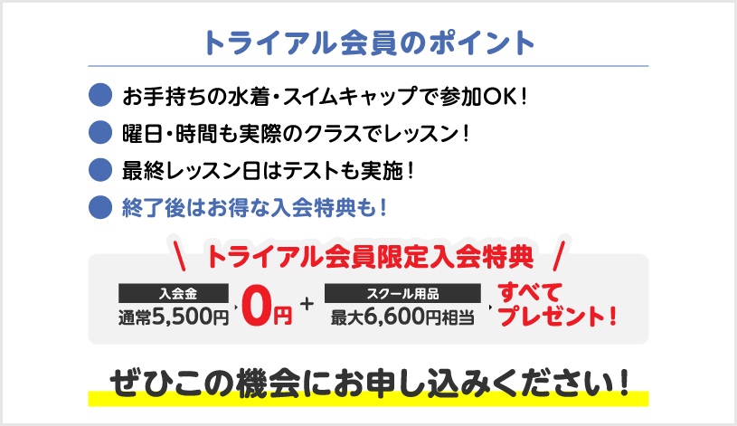トライアル会員なら、1ヶ月間(全4回)のレッスンに参加でき、